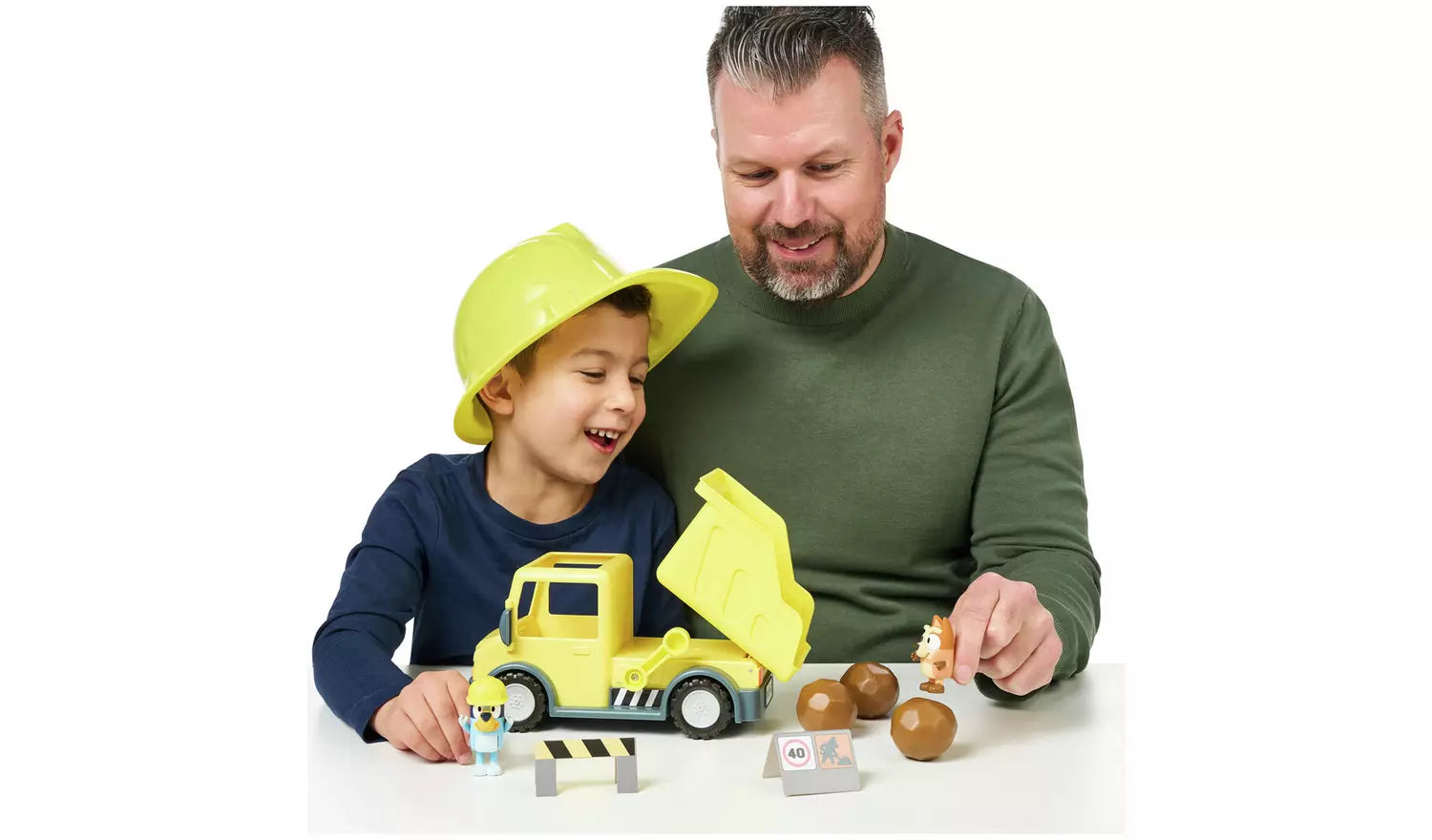 - Figures can sit in truck cabin and come with hard-hat and muddy Bingo details