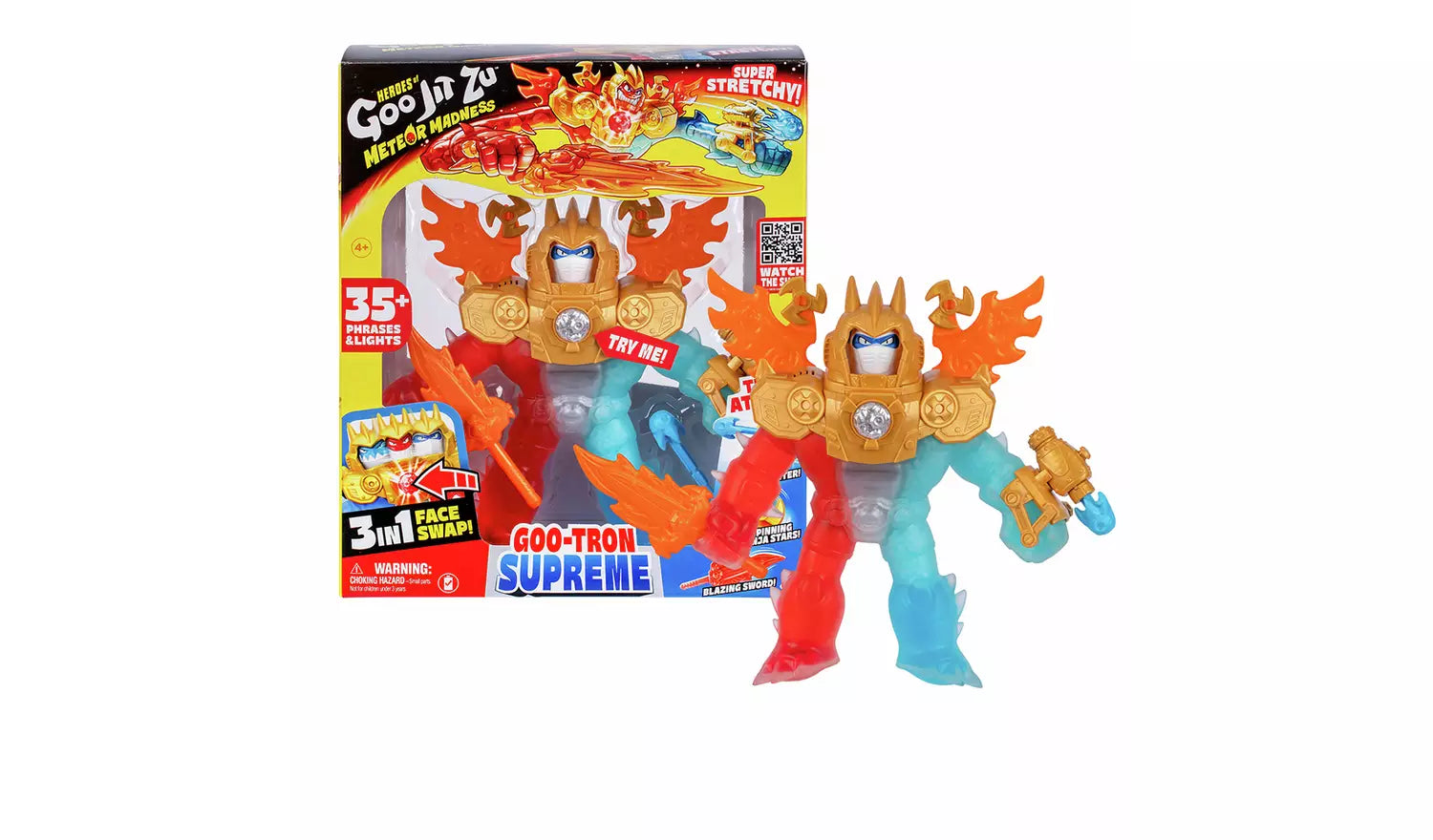 - Three Attacks:Whether it's Blazagon's Blazing Sword, Pantaro's spinning Ninja Stars, or Thrash's Meteor Blaster, GooTron Supreme has the ultimate weapons!