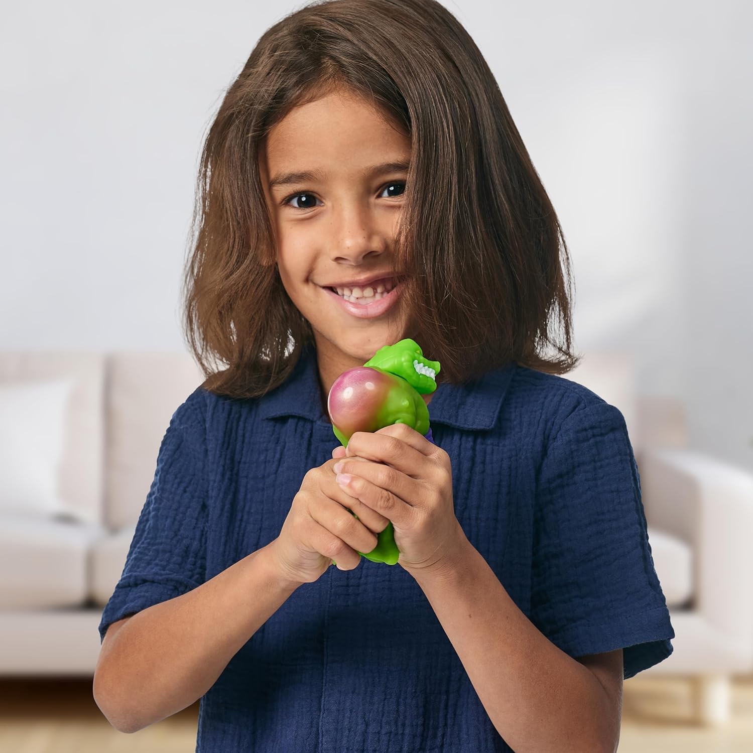 - Squeeze and stretch his body to discover the unique goo filling!