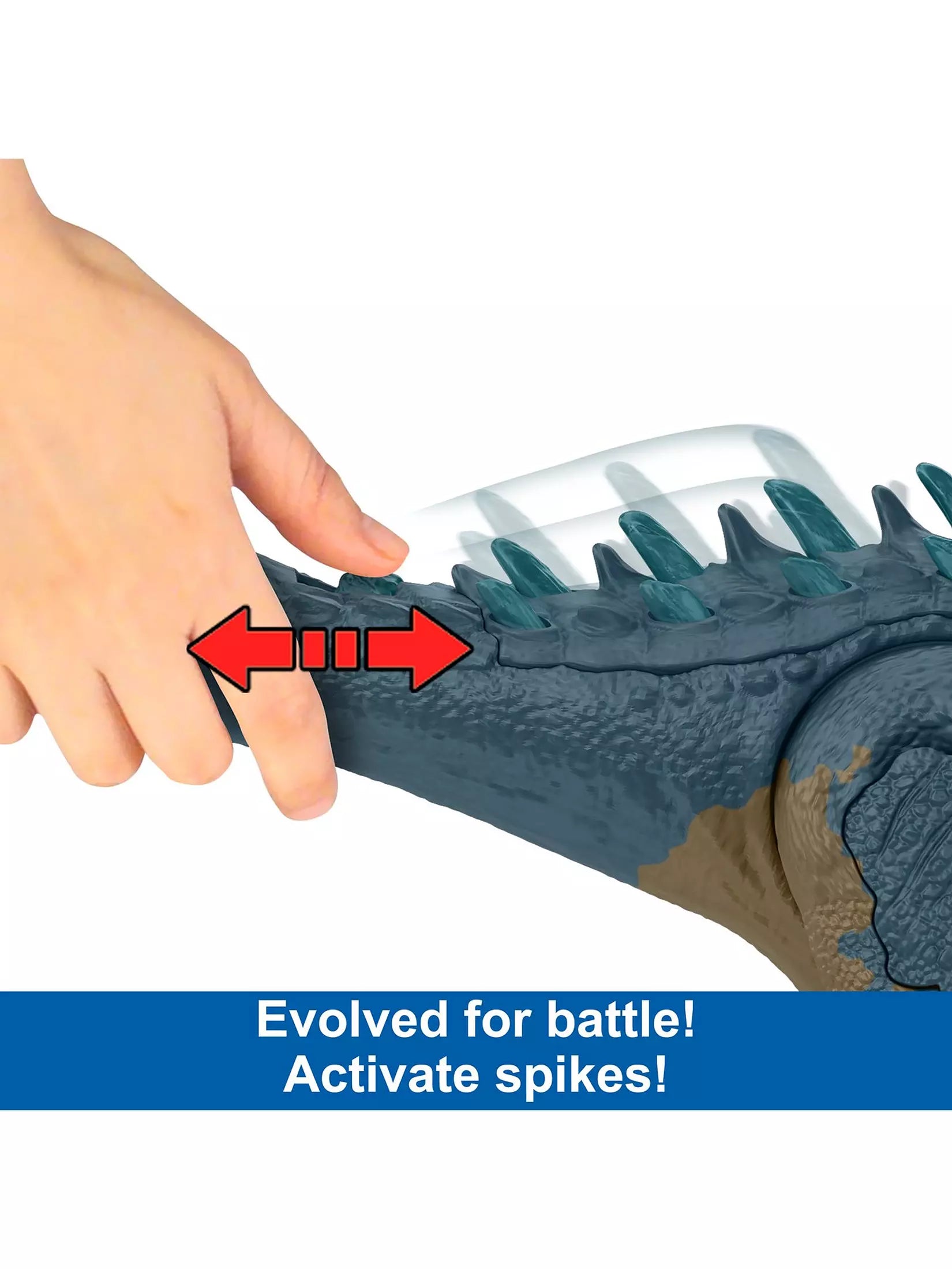 - Tail button dramatically raises back and tail spikes for battle-ready action