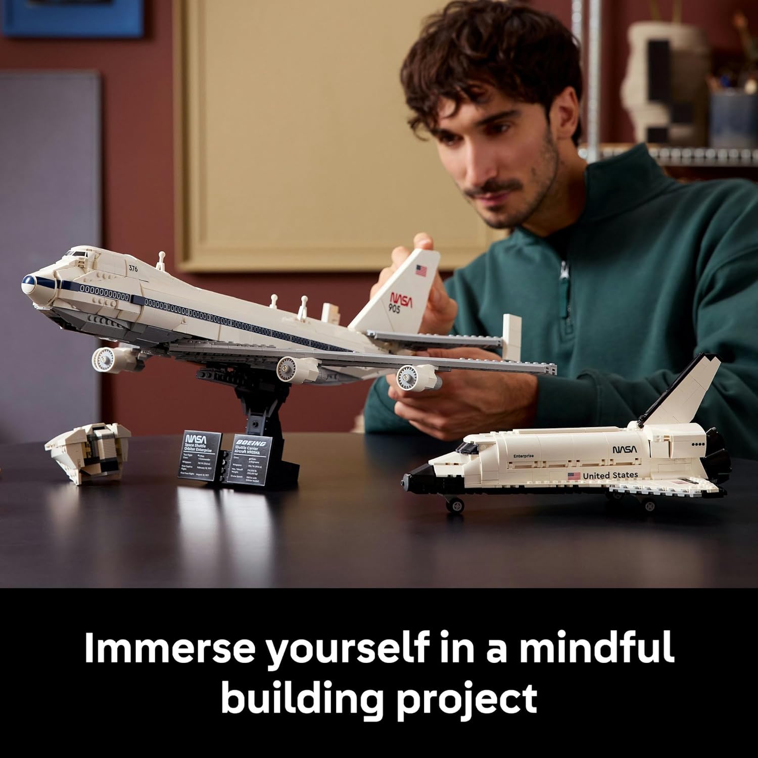 - Home office decor for fans of space exploration – Launch into an immersive building project with the LEGO Icons Shuttle Carrier Aircraft building set for adults