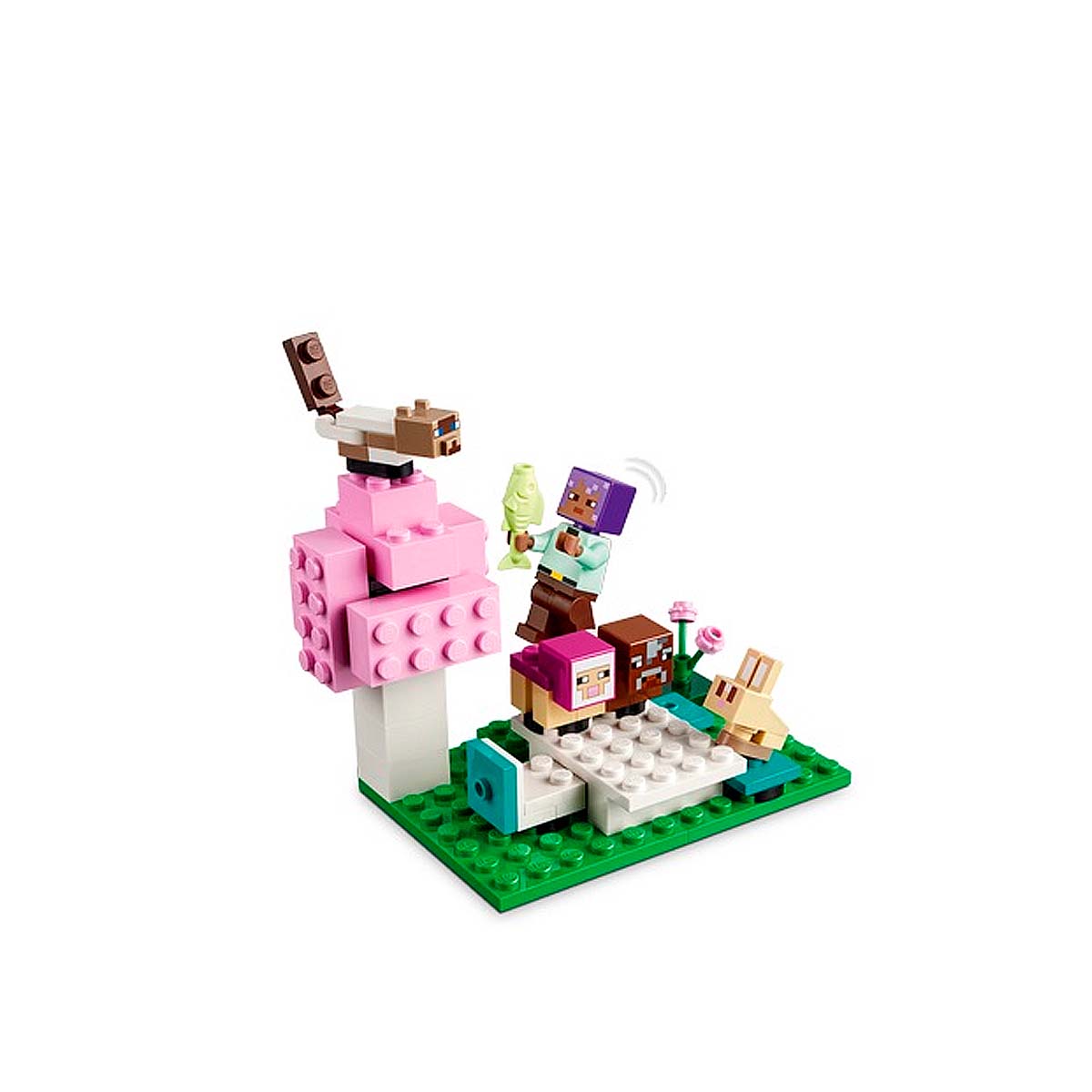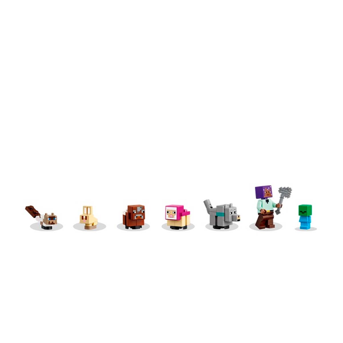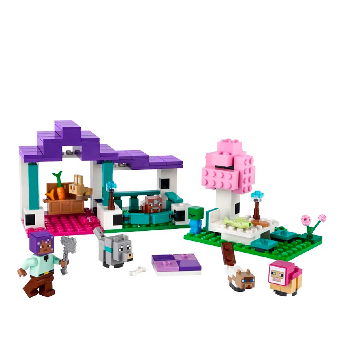 This LEGO set includes 6 Minecraft animals to care for, and the first appearance of LEGO Minecraft character Efe for action role-playing. This Plains Biome Animal Set contains 3 areas: a fenced play space with a door and a room that houses a chest full of animal food, including a bone, a carrot, and wheat; a picnic area with a table under a tree; and a rug where tired animals can rest. In addition to the animal caretaker, Efe, the baby mobs in the set include a Minecraft cat, a magenta sheep, a wolf, a rabbit, a cow... and even a Minecraft baby zombie.