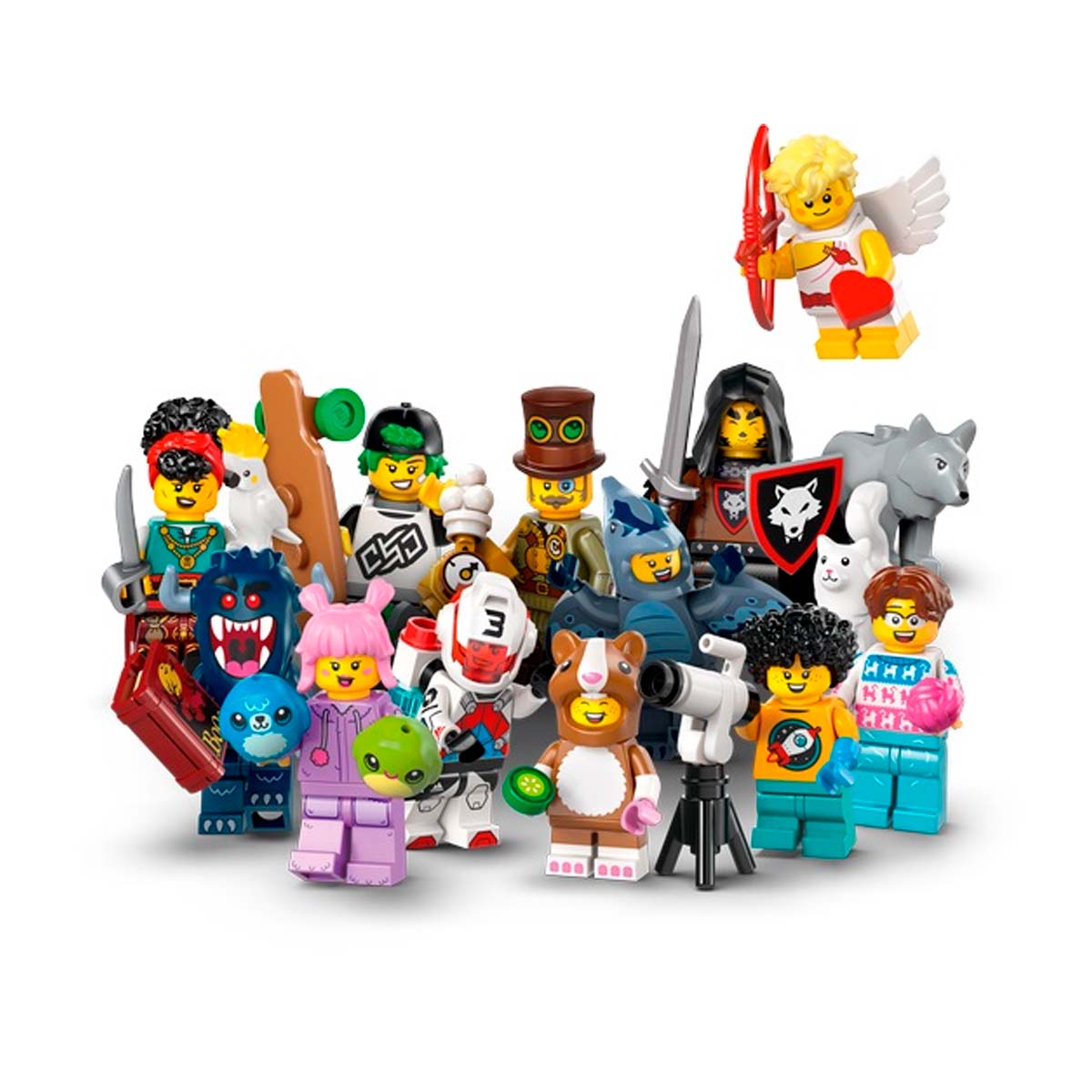 There is 1 surprise LEGO minifigure in each box and a total of 12 characters to collect: Wolfpack Beastmaster, Pirate Quartermaster, Steampunk Inventor, Pterodactyl Costume Fan, Bogeyman, Jetpack Racer, Cat Lover, Longboarder, Astronomer Kid, Cupid, Hamster Costume Fan and Plush Toy Collector.
