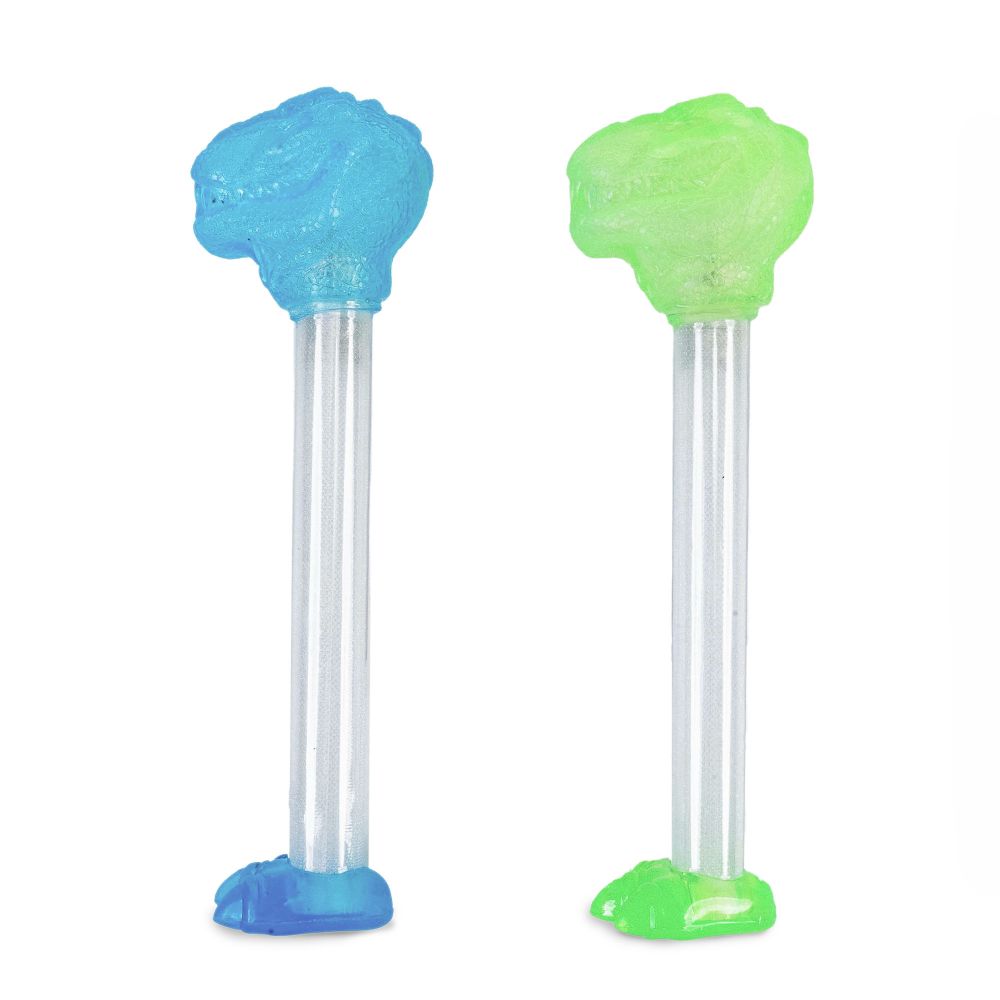- Light-up Dino baton activates on hit