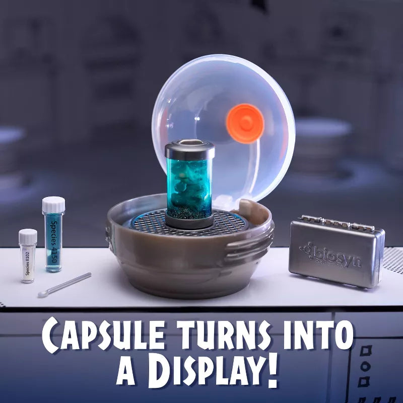 - Includes DNA powder, liquid, and tools to “create” your mini dinosaur through shake-and-set play