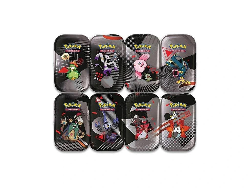 - In this Pokémon TCG: Unova Mini Tin, you’ll find: 1 Pokémon TCG: Scarlet & Violet—Black Bolt booster pack, 1 Pokémon TCG: Scarlet & Violet—White Flare booster pack, 1 of 8 sticker cards showing the art from this Mini Tinand a Pokémon art card showing the art from this Mini Tin—you can collect and combine all 8!