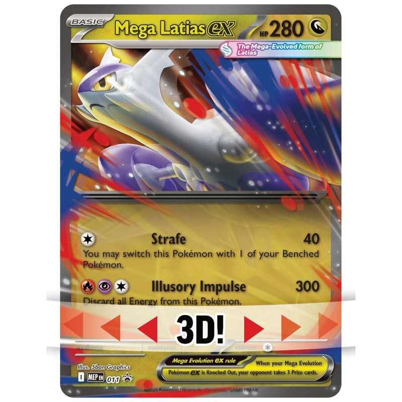 - Contents: 4x booster packs, 1x foil promo card featuring Mega Latias ex and 1x oversize lenticular promo card featuring Mega Latias ex