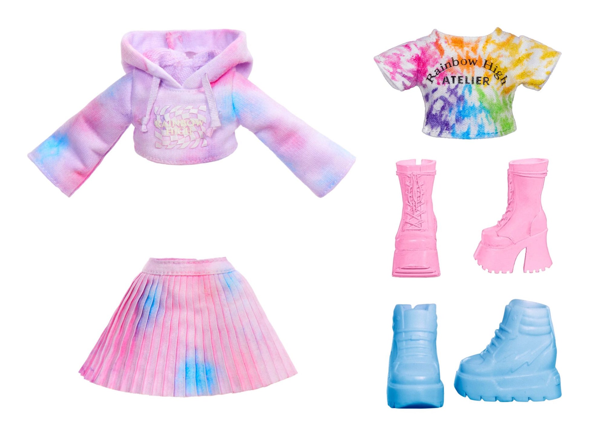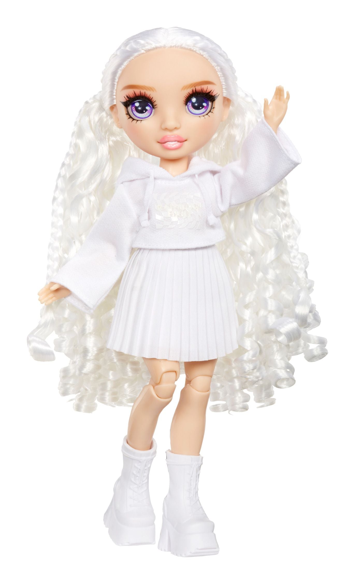 - Comes with a doll dressed in an all-white outfit (hoodie, pleated skirt, and white high-top trainers), plus an extra shirt and trainers.