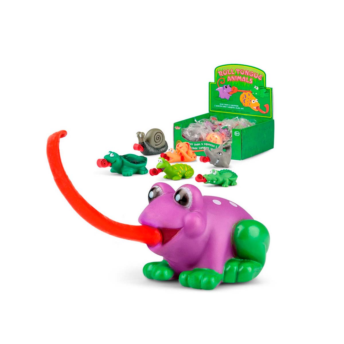Simply squeeze this fun rubber animal and watch its rolled up tongue shoot out! A delightful novelty toy, guaranteed to bring lots of fun and laughter!