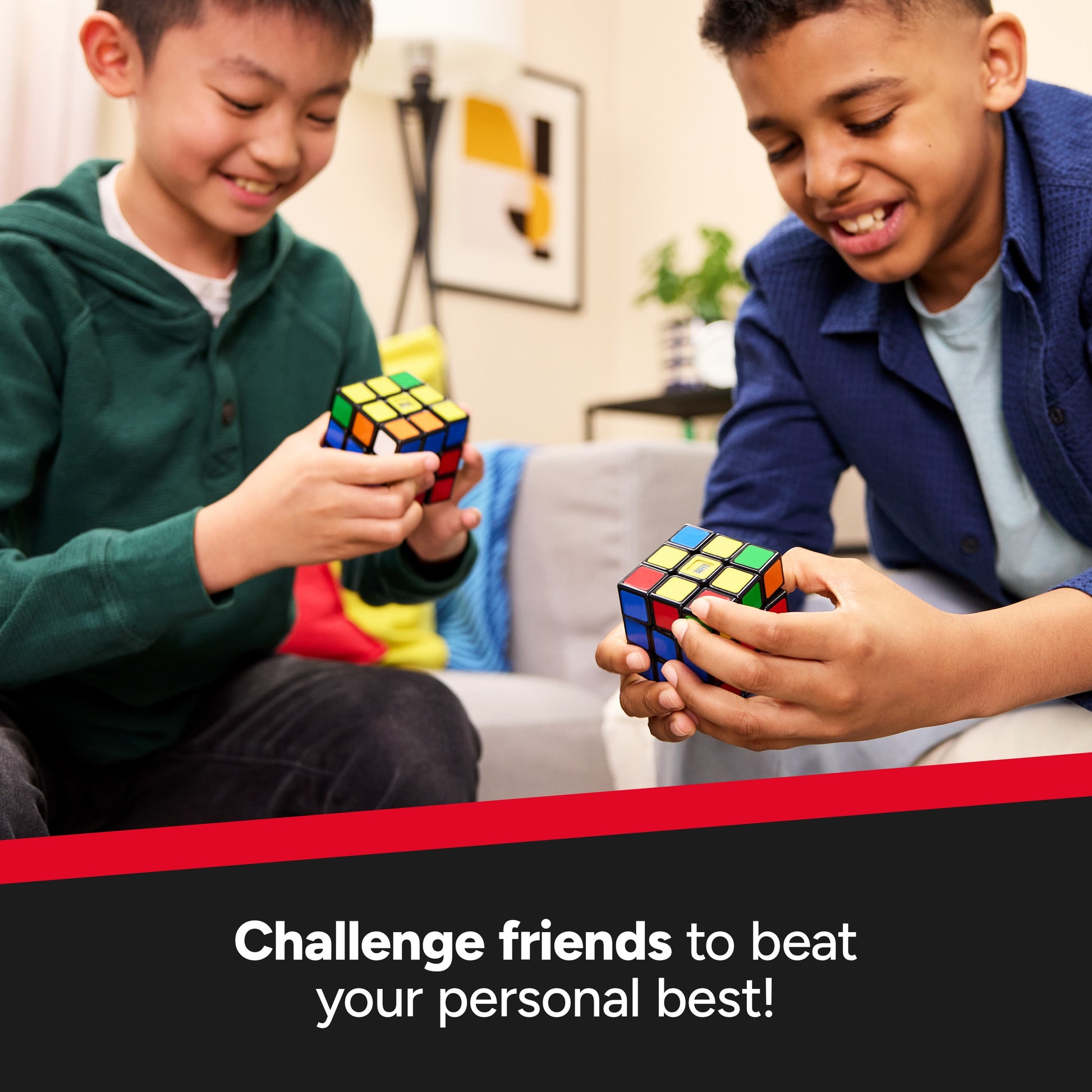 - Built in Timer: Beat your personal best time with the Rubik’s Timer Cube – the Cube with a built-in timer that keeps accurate time as you solve . Play, then display your Cube with the included stand.