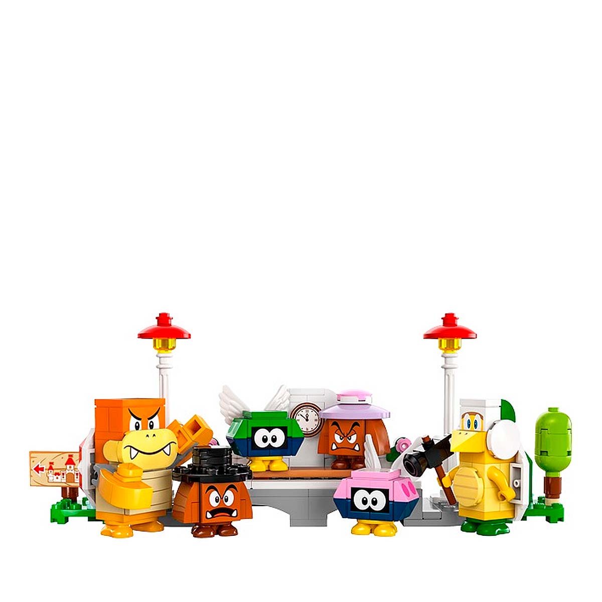 - Adventure playset featuring 6 LEGO Super Mario toy figures – A Hammer Bro, Boom Boom, 2 Goombas and 2 Para-Biddybuds