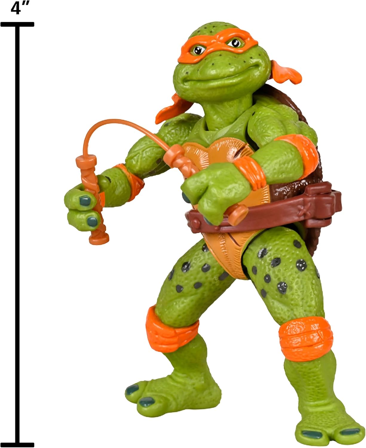 - Movie Star Mikey stands 4-inches tall with decoration inspired by the 1991 TMNT Blockbuster Movie!