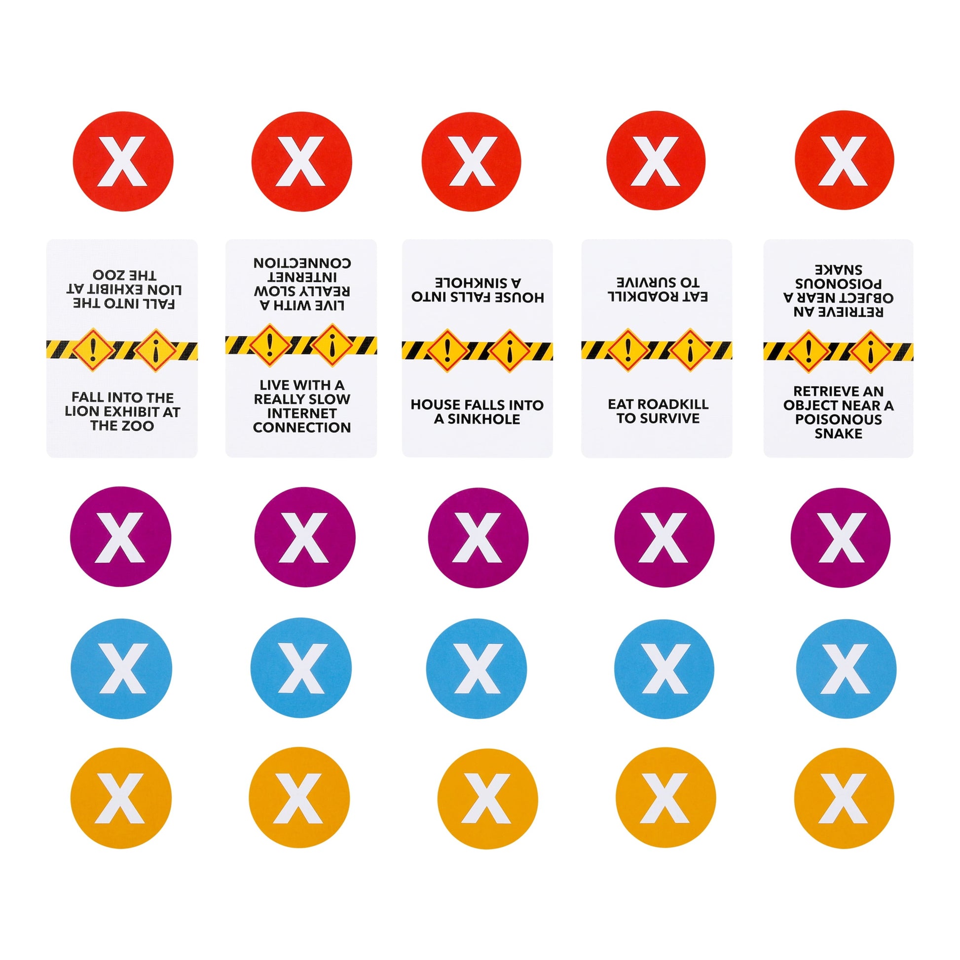 - Game Components: Includes 225 Worst-Case Scenario Cards, The Victim Wheel, 30 Ranking Chips, Score Pad, Pencil, and Easy Rules.