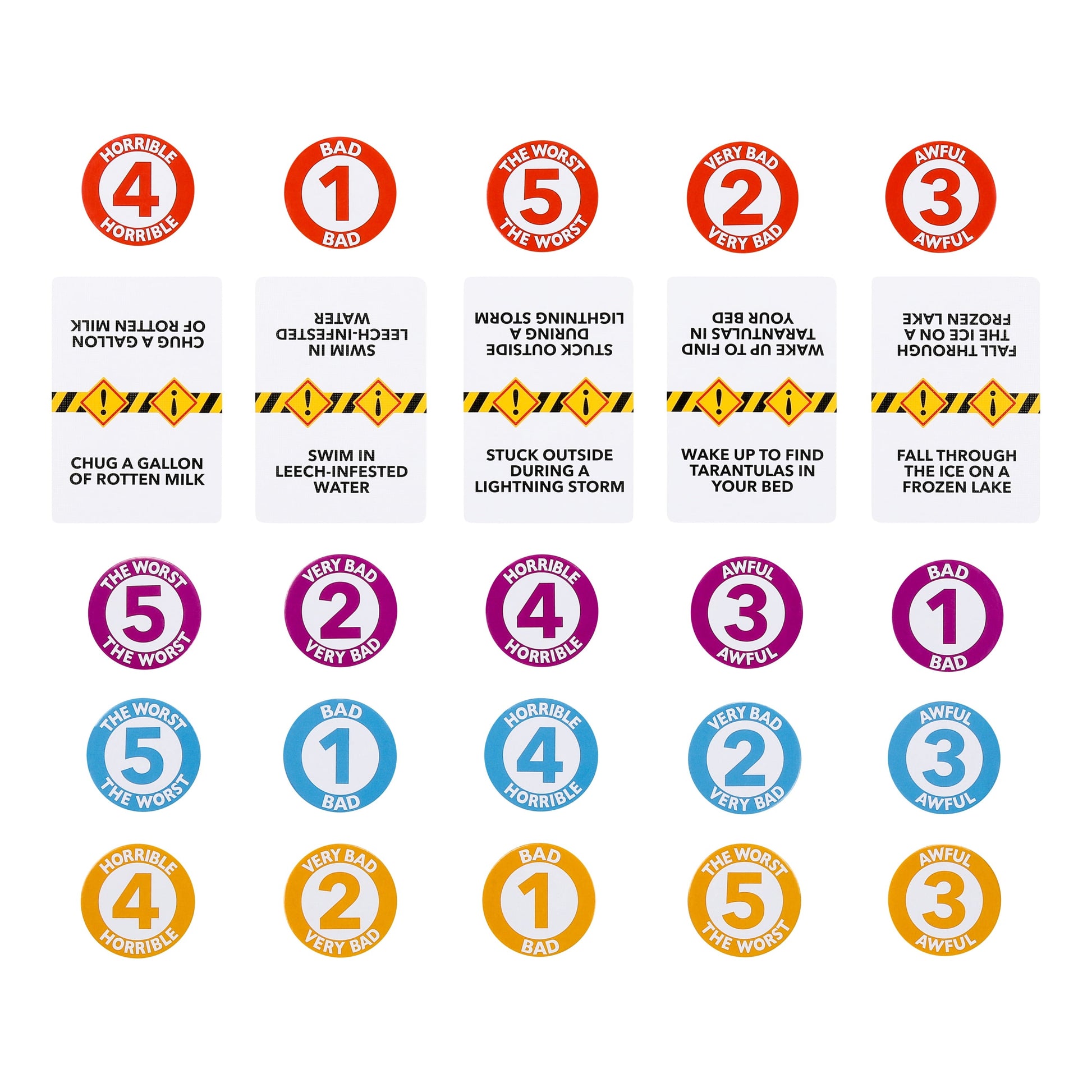 - Scoring Points: Match how players rank five worst-case scenarios from 1 (Bad) to 5 (The Worst). Match correctly and score points. Score the most points...and win!