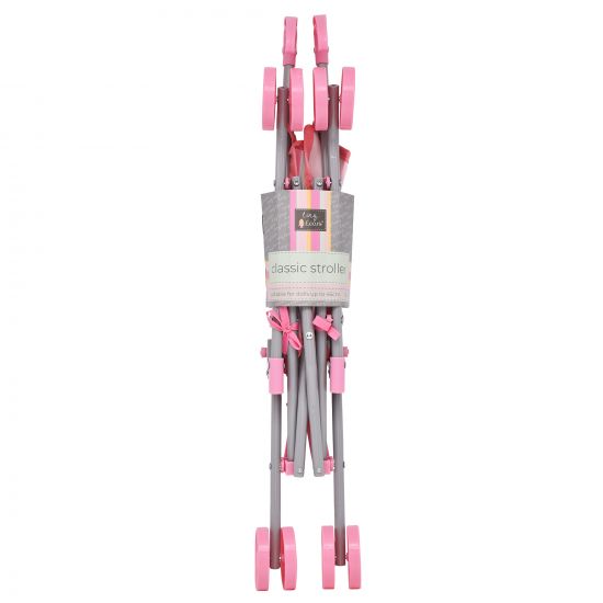 The Tiny Tears pram is suitable for all dolls up to 46 cm. The pram has a cute striped print and the Tiny Tears logo on the back. It folds flat for easy storage.
